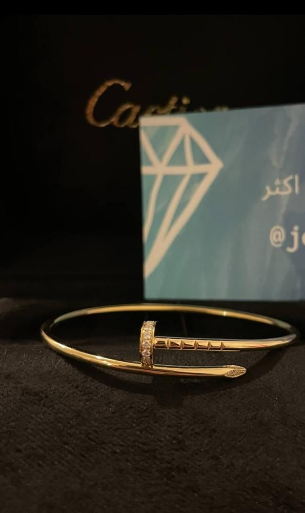 سوارة المسمار بألماس ذهب اصفر مقاس 15 و 17
